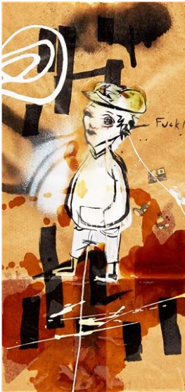 mixed media spray paint, collage, ink, marker and stencil on brown paperbags (2)